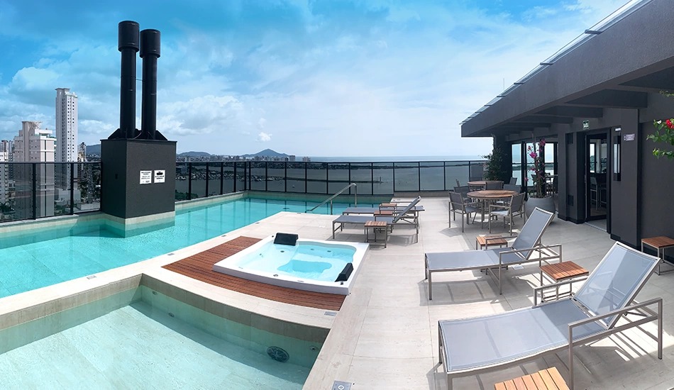 Área de lazer completa no rooftop