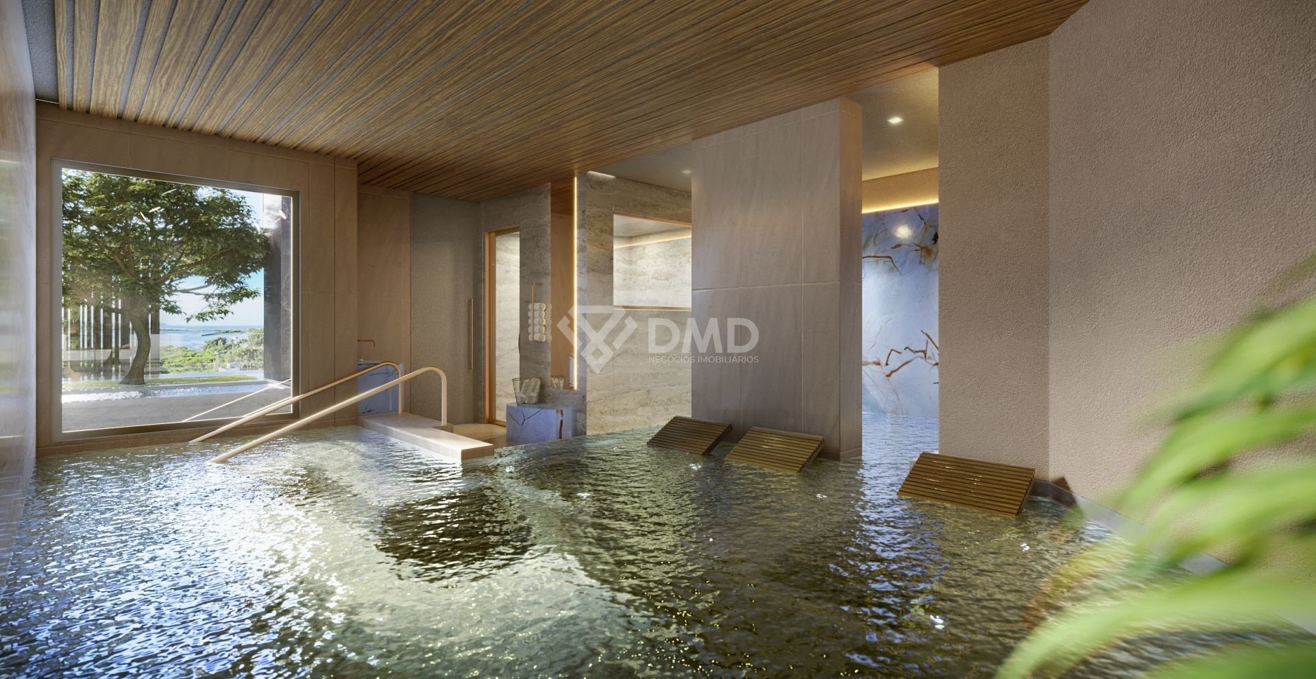 Piscina interna aquecida com ofurô