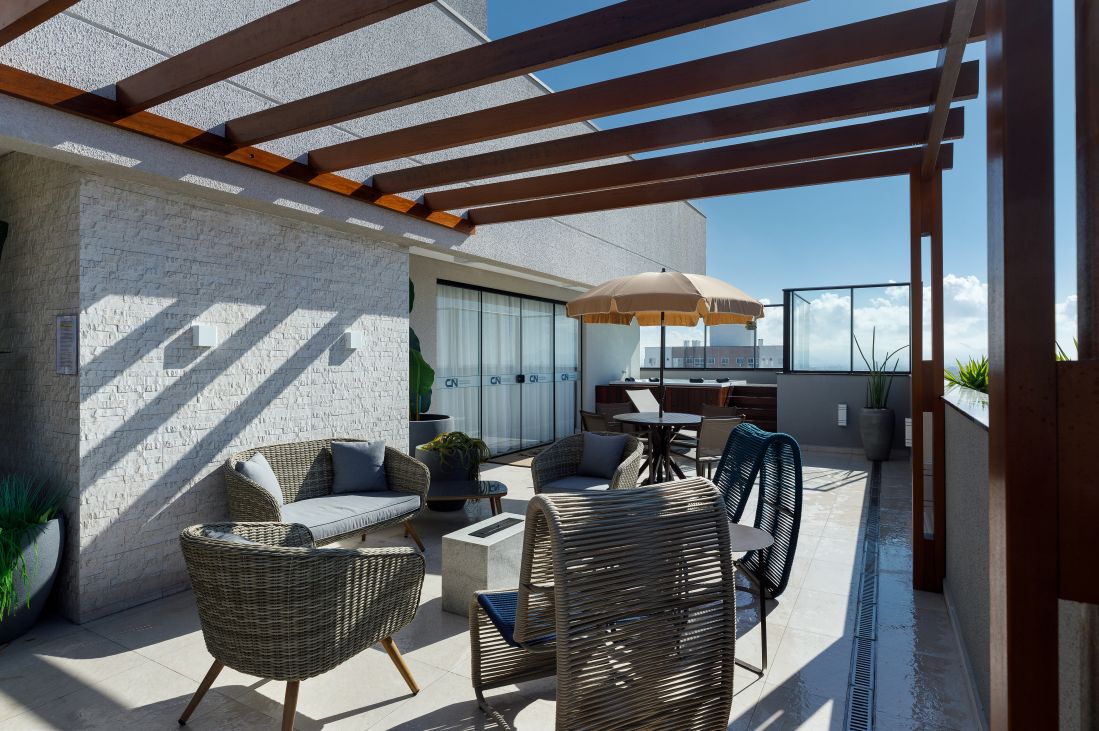 Rooftop com espaço luau e banheiras hidromassagem, Academia, Salões de festas, Play Space, Brinquedoteca.