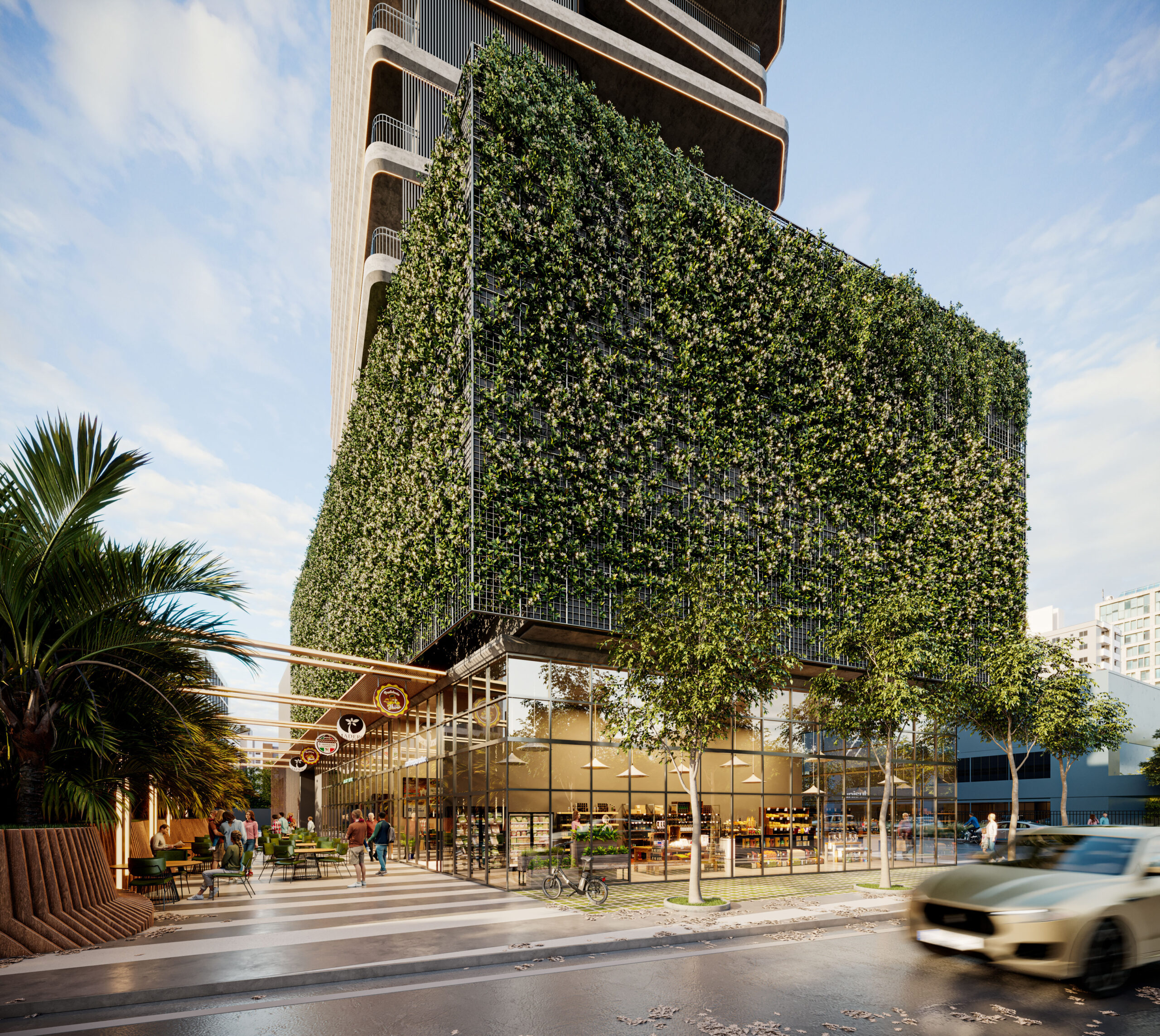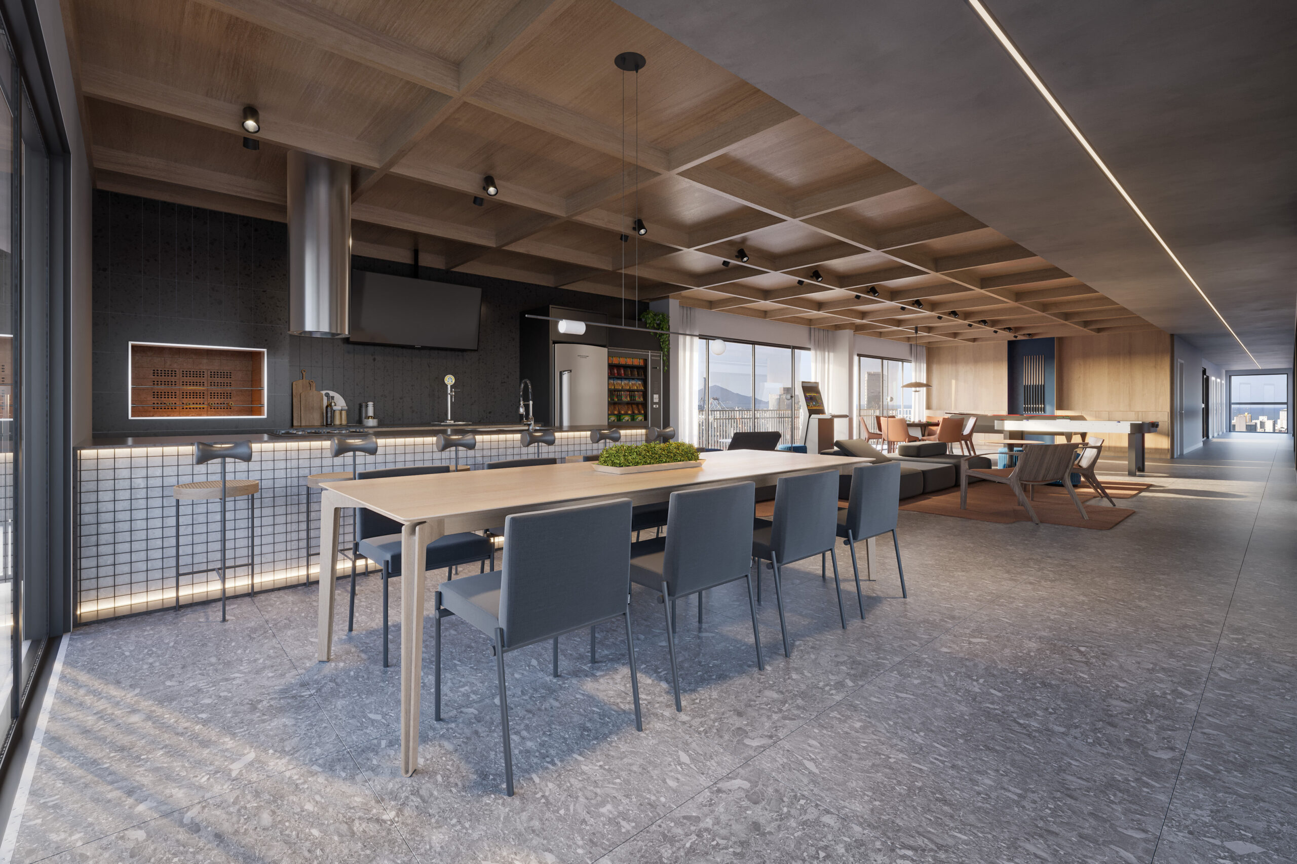 Espaços no térreo destinados a lojas, restaurantes e escritórios, conectando o empreendimento à cidade e gerando maior praticidade para o dia a dia.