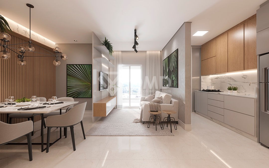 Composto por 3 dormitórios sendo 1 suíte, lavabo, living integrado com sala de estar e jantar, cozinha e sacada com churrasqueira a carvão.
