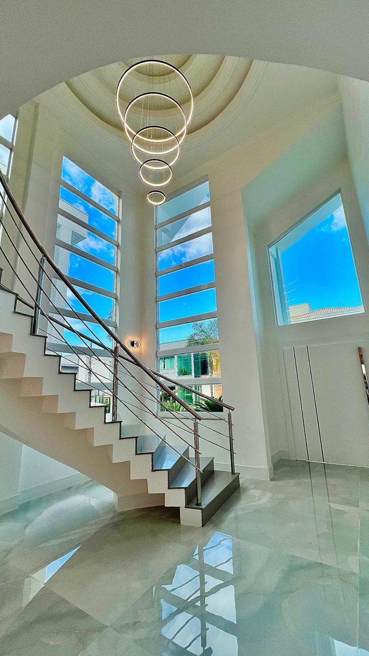 5 suítes, sendo 1 no térreo e 4 no pavimento superior